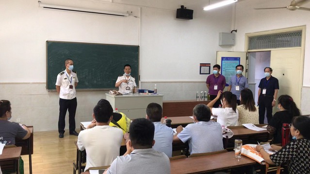 面对暑假期间旺盛的船员培训需求,在学校党委和行政的正确领导下,继续教育学院积极应对疫情压力安排培训计划,对接海事主管机关和学校各部门,多措并举形成合力精心筹划安排各类培训的教学实施和考试组织。江苏海事局船员处处长高革人、考试中心主任蒋楠隽、学校副校长陈晓琴、教务处处长王涛等海事主管机关和学校领导多次亲临培训考试现场指导工作,关心关爱培训学员,极大鼓舞了学员们的学习积极性。江苏海事局、南京海事局为学校培训工作开展提供了各种便利和支持,韩杰祥、薛国平、楼开杰、陈豪、李家宝等海事局考官冒着酷暑多次来到学校组织理论和实操评估考试。学校防控办、学工处、后勤与安全保卫处、图书馆、现教中心等在食堂宿舍安排、学员进校审批、考试系统调试等方面给予了无私支持和全力保障。航海学院、机电学院、船舶学院、体育教学部等教学单位克服困难为培训开展安排了优质师资和规范的实操设施场地。王国正、胡明华、孙长飞、左财宝、刘玉红等老师放弃了休息,任劳任怨地奋战在教学一线,高质量完成了各项理论和实操教学任务,用他们辛勤的汗水换来了一名又一名学员顺利通过考试取得证书。