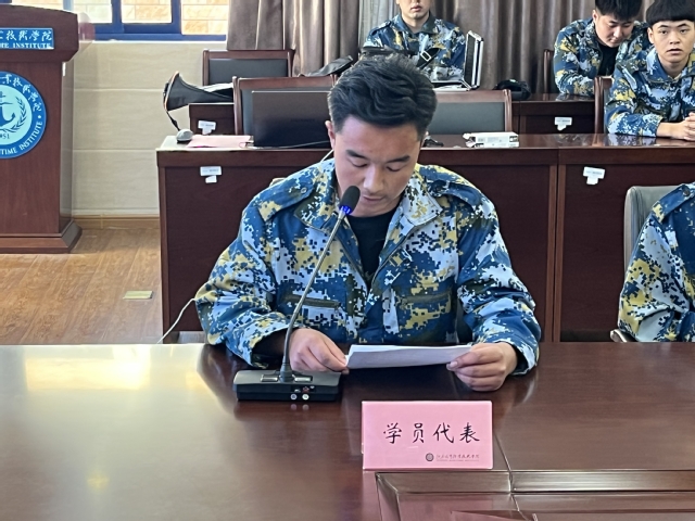学员代表李刚发言,他向苏陇两省政府、学校和航运企业给予他们机会走出大山成为一名光荣的海员表示诚挚感谢和崇高敬意。李刚代表全体学员表态:一是珍惜机会,加倍努力;二是服从管理,严守纪律;三是现身说法宣传“333计划”,带动更多西部青年走出大山圆航海致富梦。