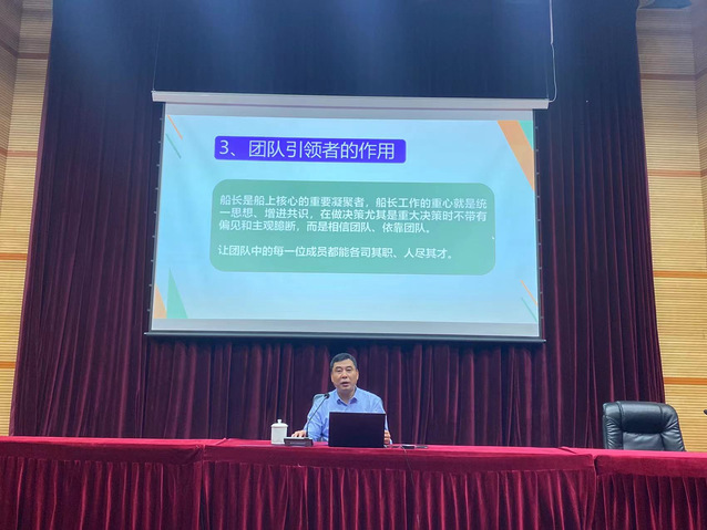 石船长从五个方面来讲解了驾驶台资源管理和航行安全的主题,他结合自身多年担任船长和船舶管理者的丰富经验,从现代管理基础、驾驶台资源管理、航行安全的基础、凝聚团队的精神和案例分析五个方面深入浅出的阐述了航行安全的相关要求,既有理论深度,又有实践经验分享,对船长班、大副班学员未来在船工作有很强的指导意义。