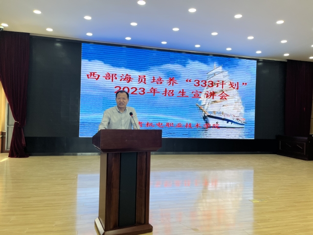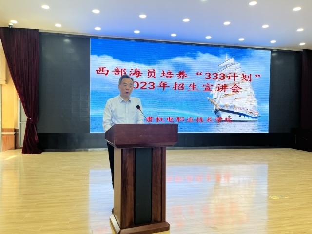 6月7日下午,西部海员培养“333计划”招生宣讲会在甘肃机电职业技术学院大报告厅召开,来自兰州、天水、武威、酒泉等十余个西部城市的两百余名本科、高职、中职应届毕业生参加宣讲,会议由甘肃机电职业技术学院招生就业处处长杨旗琦主持。集中观看我校招生宣传视频后,田乃清从“把握机缘、谈谈学校”、“逐梦深蓝、谈谈记忆”和“海阔天空、谈谈梦想”三个主题出发,鼓励西部学子们走出大山奔赴大海,通过参加海员职业技能培训走上航海职业道路改变人生命运实现理想。袁昌富介绍了“333计划”的基本情况和招生要求,张卫华、薛世华、李义等分别介绍了所在航运企业的基本情况、经营理念、船员队伍建设情况和往届“333计划”学员在船工作情况,整个宣讲过程气氛热烈,激发了学生们对海员职业和航海梦想的极大兴趣和向往。会后,三家航运企业负责人对一百余名报名参加本次招生的学生进行了面试交流。甘肃省人社厅职业能力建设处处长史永斌、副处长罗辉和四级调研员陈笑龙等来到面试现场指导工作。