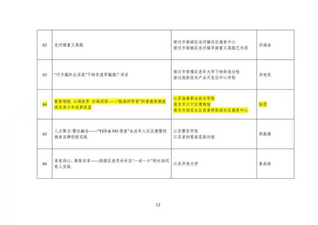 为深入实施教育数字化战略,优化终身学习公共服务,推动社区教育高质量发展,江苏省教育厅依据《教育部办公厅关于征集数字赋能学习型社区建设典型案例和品牌课程的通知》(教职成厅函〔2025〕22号)要求,组织开展了全省范围内的学习型社区建设案例和课程征集工作。经各地各校推荐、省教育厅综合审核把关,最终筛选出119个符合案例基本规范、贴合居民学习特点需求的优秀典型案例予以全省推介,供各级各类社区教育机构日常教育教学借鉴使用,相关案例已在“江苏学习在线”“江苏老年教育网”等全民终身学习平台正式发布。